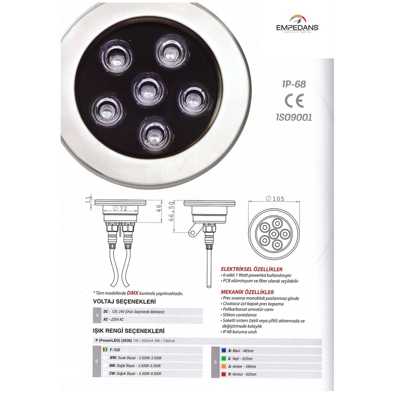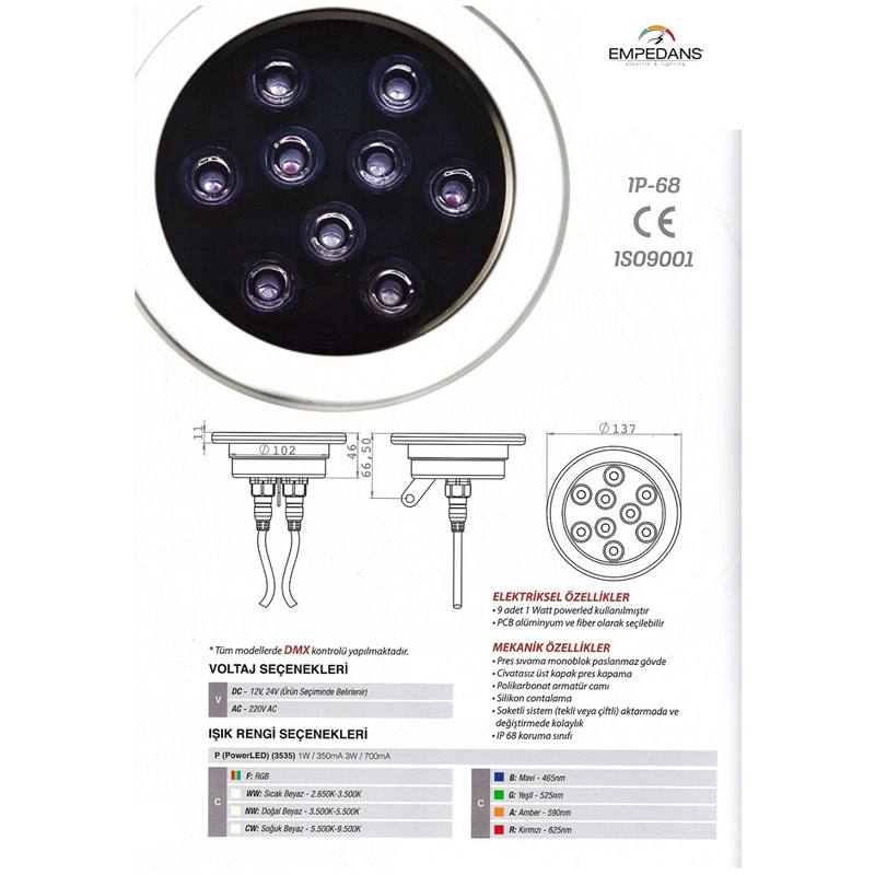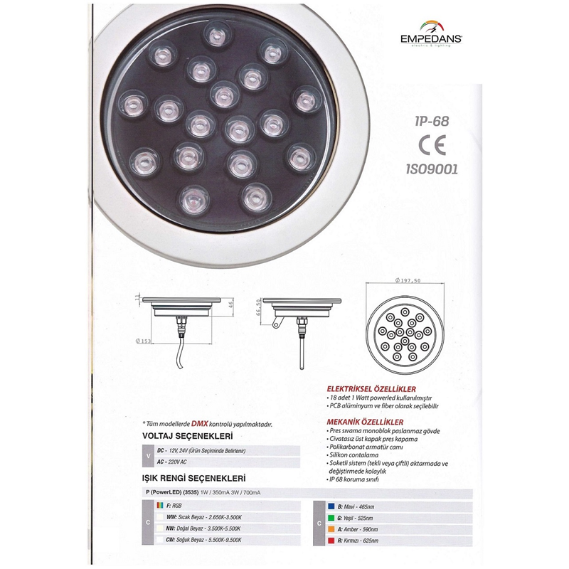 LED POOL LIGHTING RGB DMX HAVUZ ARMATÜRLER 6W....18W/RGB/DMX