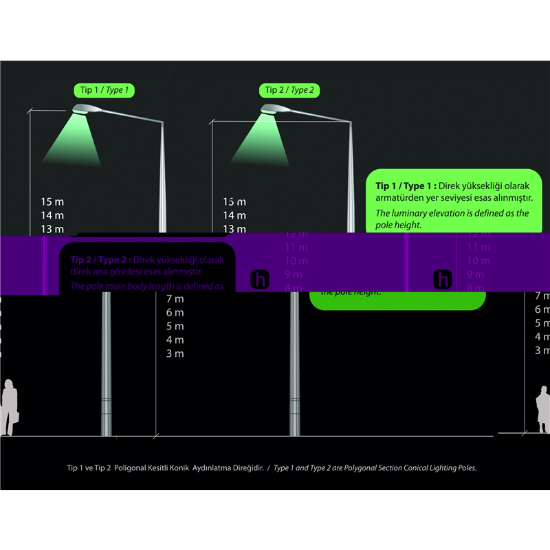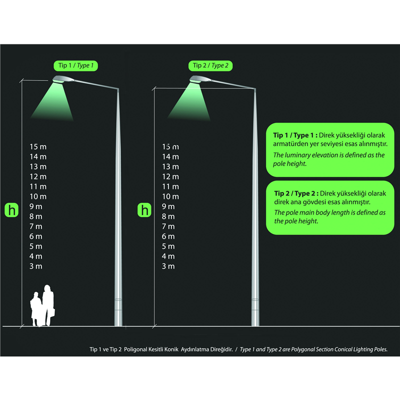 POLİGONAL GALVANİZ DİREKLER 4MT/5MT/6MT/8MT/10MT/12MT